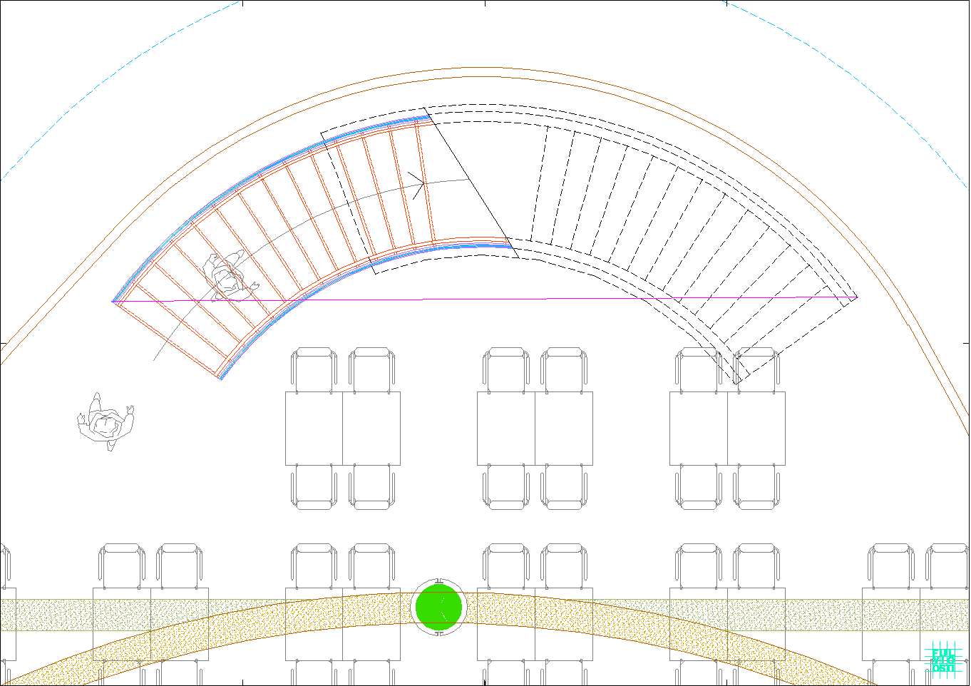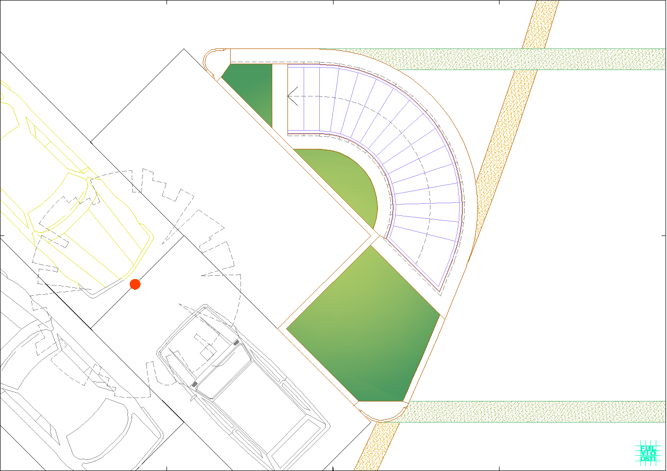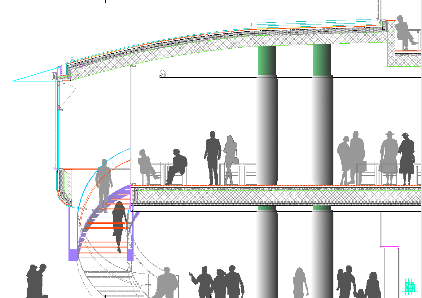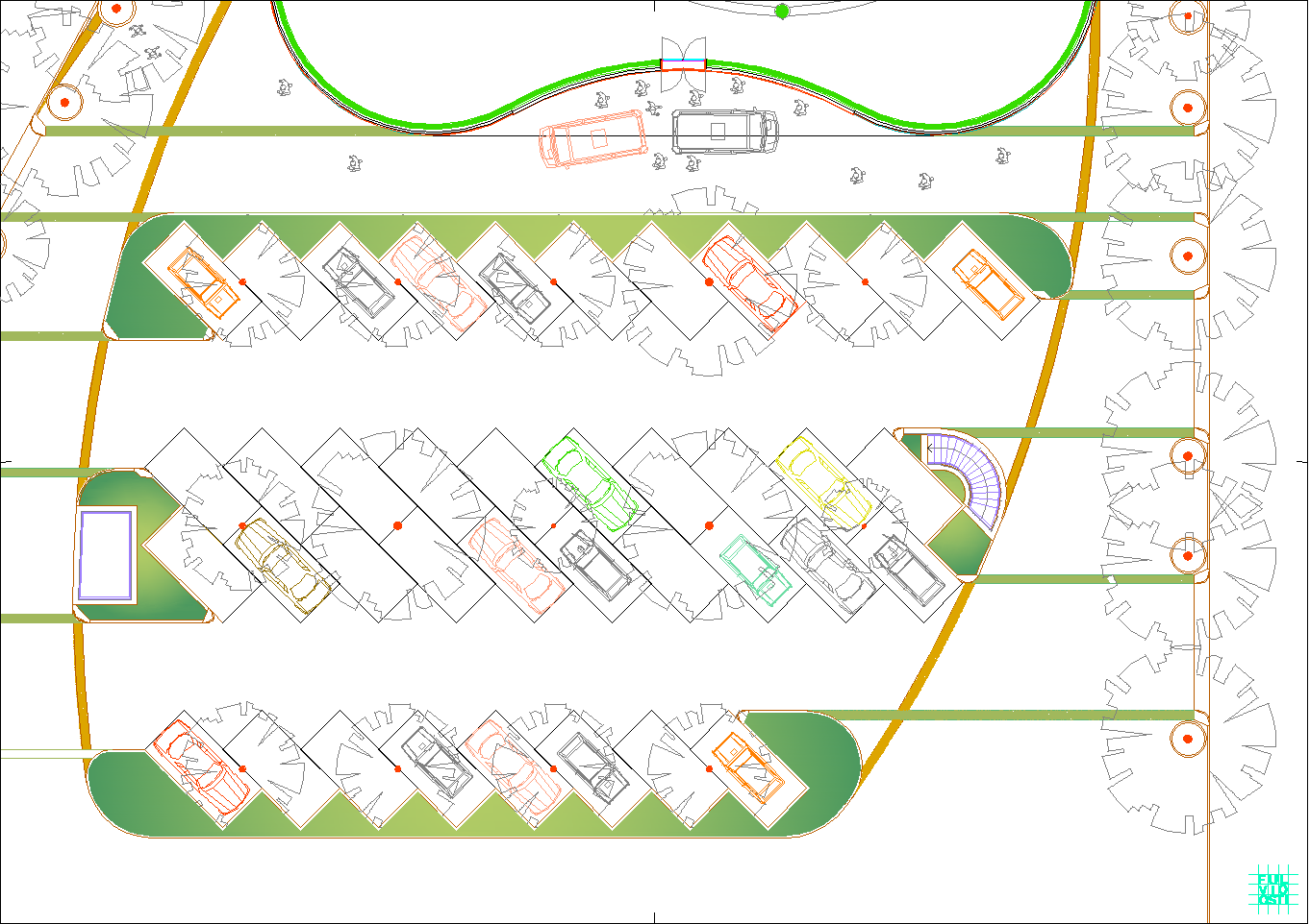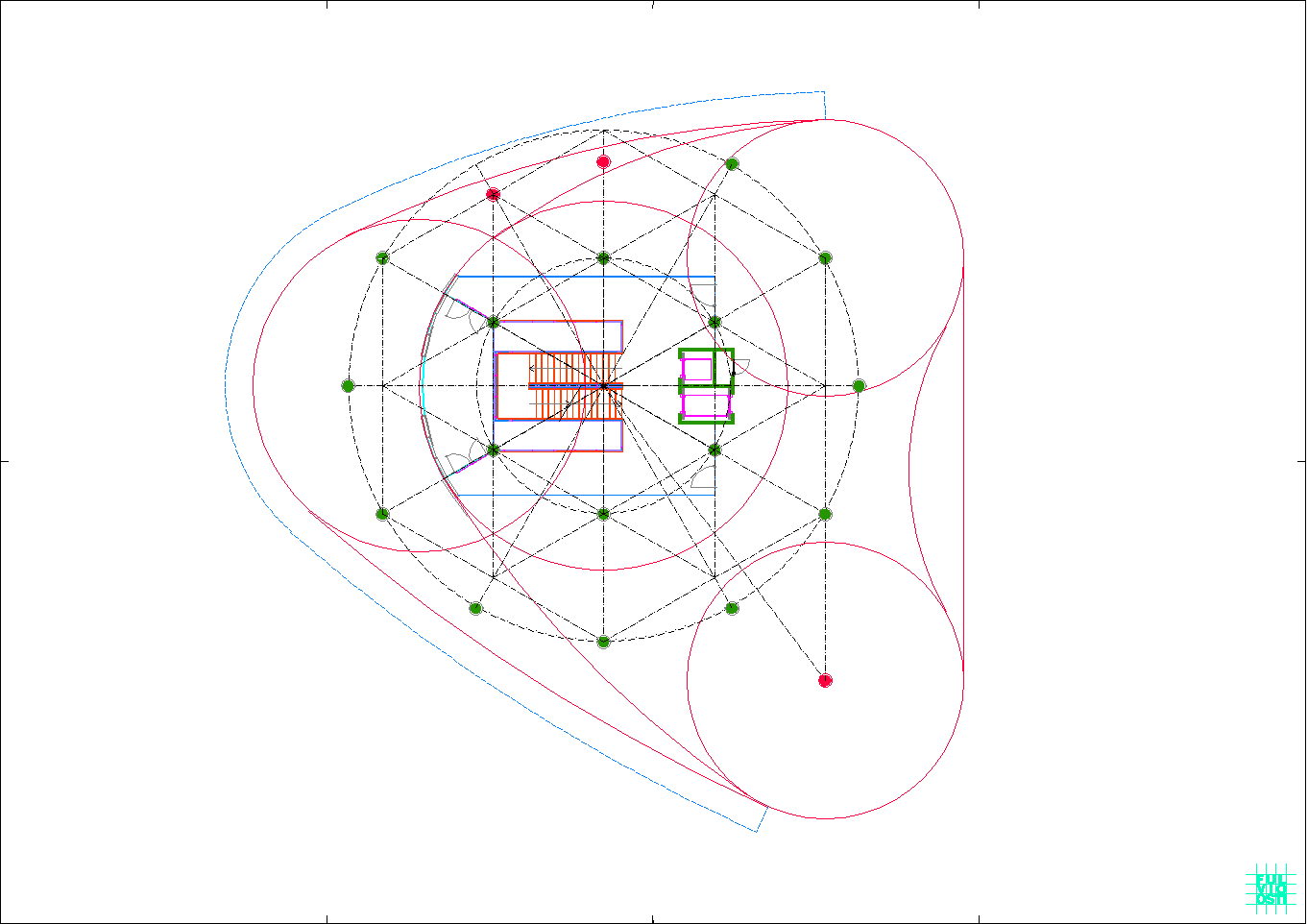 In questa "foresta" di immagini di ogni tipo, il progetto crede di individuare la propria ratio attraverso la lettura del sito, che è poco più di un trapezio allungato. Da questa situazione e da una riflessione sugli elementi ambientali, che sono proibitivi a dir poco, ne esce un modello a fasciature circolari, nell'intenzione di realizzare un involucro a forma "magmatica", come una calza di nylon che avvolge dei dischi circolari.