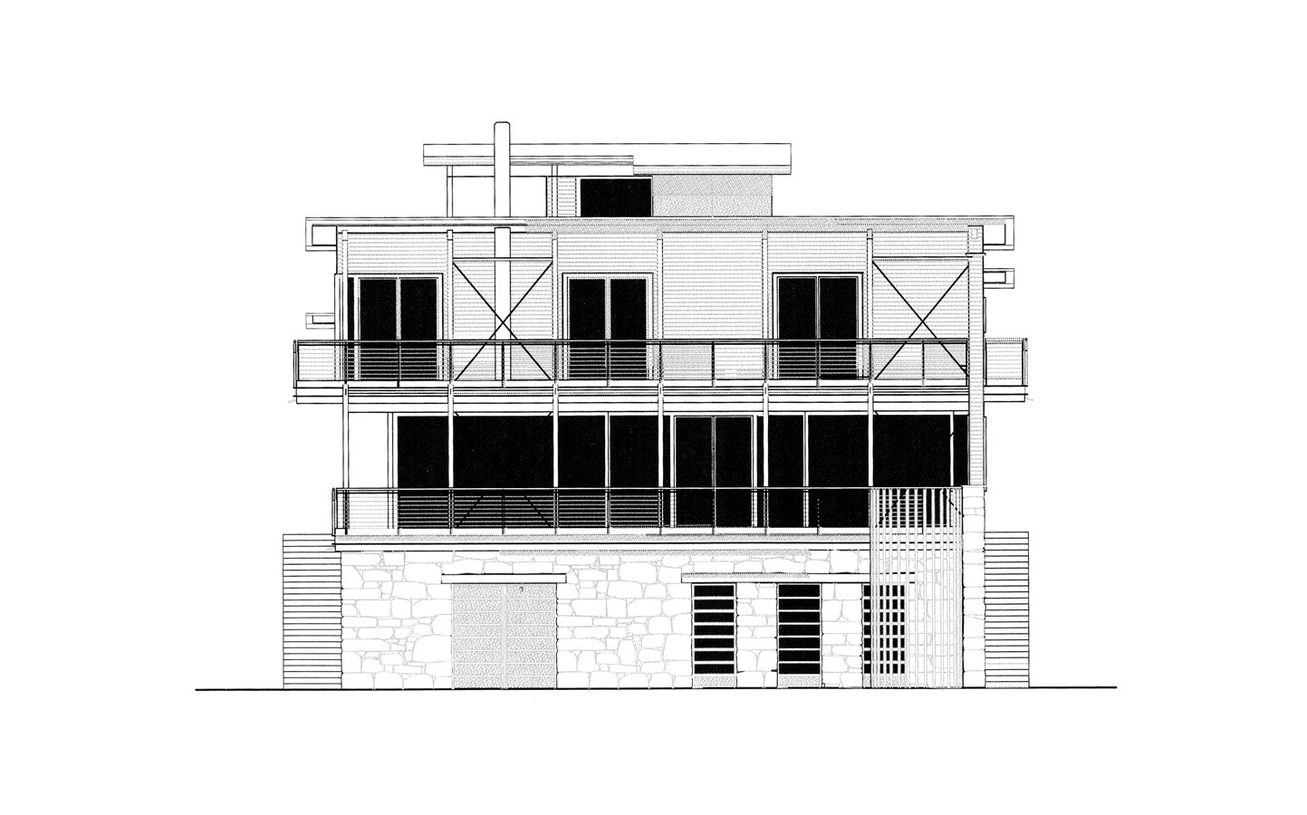Questa villa, nemmeno tanto piccola, pone in essere materia architettonica e la ordina secondo schemi logici prodotti dal telaio in legno. La qualità, se così la vogliamo chiamare, sta nell'articolazione formale degli spazi esterni e interni in ordine alle varie occasioni abitative che la soluzione organizza.