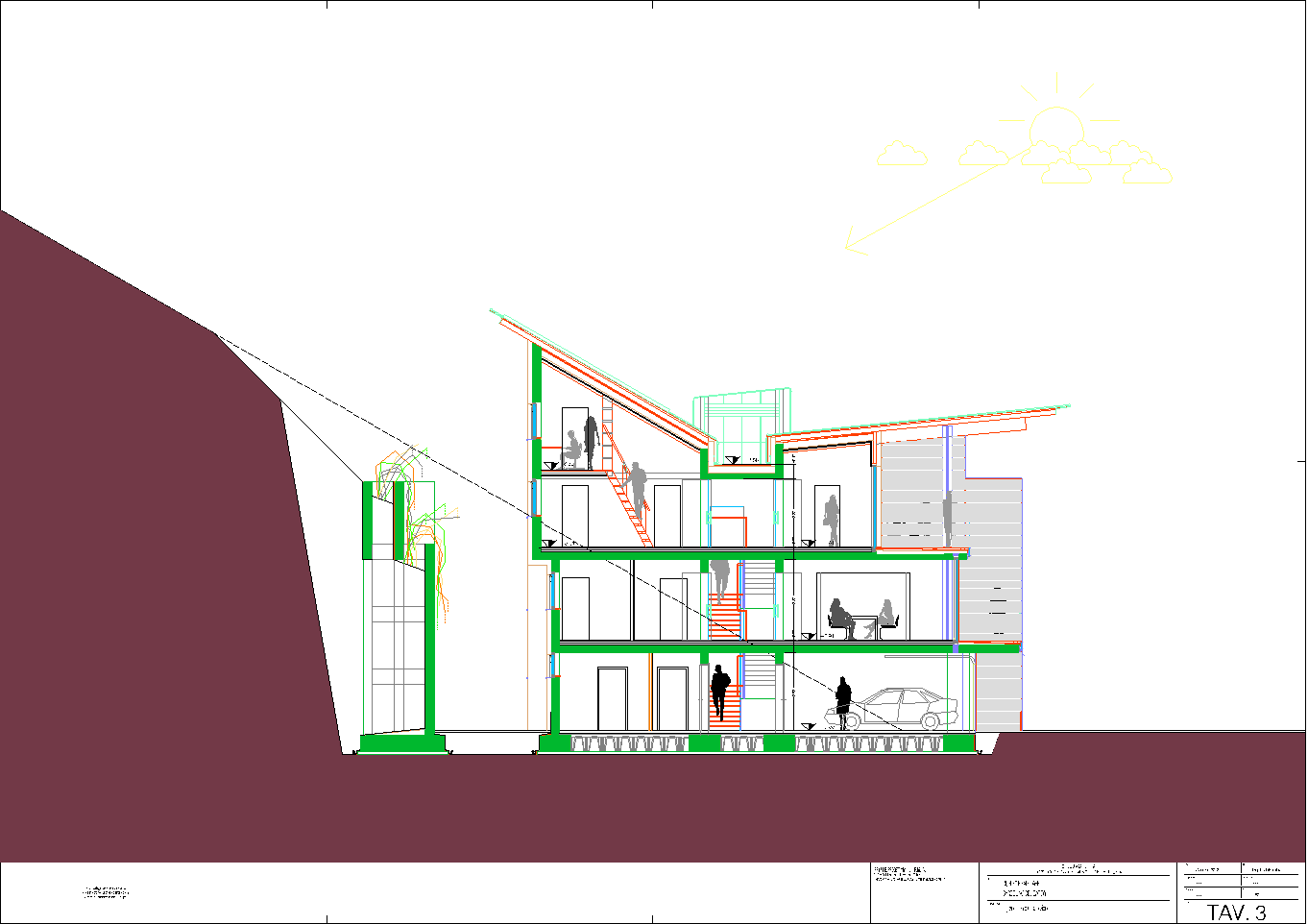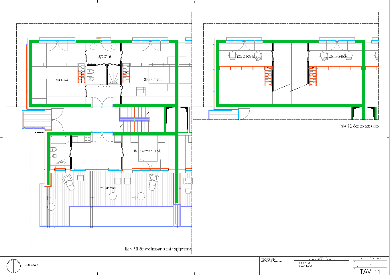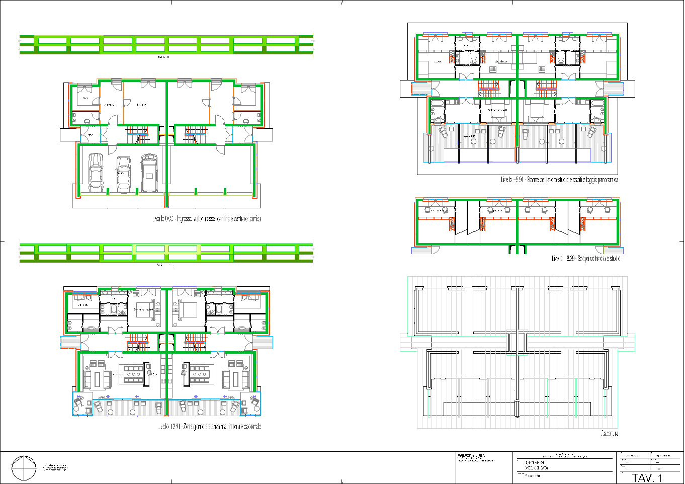 La presente elaborazione deve la sua possibilità alla famiglia Bassani Raimondi di Bardolino, che ha avuto l'idea di servirsi di una professionalità disponibile alla sperimentazione. Il bisogno sentito di due fratelli di realizzare la propria dimora ha portato alla ricostruzione di un luogo già saturo di edilizia anni '50 obsoleta e di nessuna qualità. Il tema edilizio, già sintetizzato nel titolo, realizza due unità abitative simmetriche e affiancate.