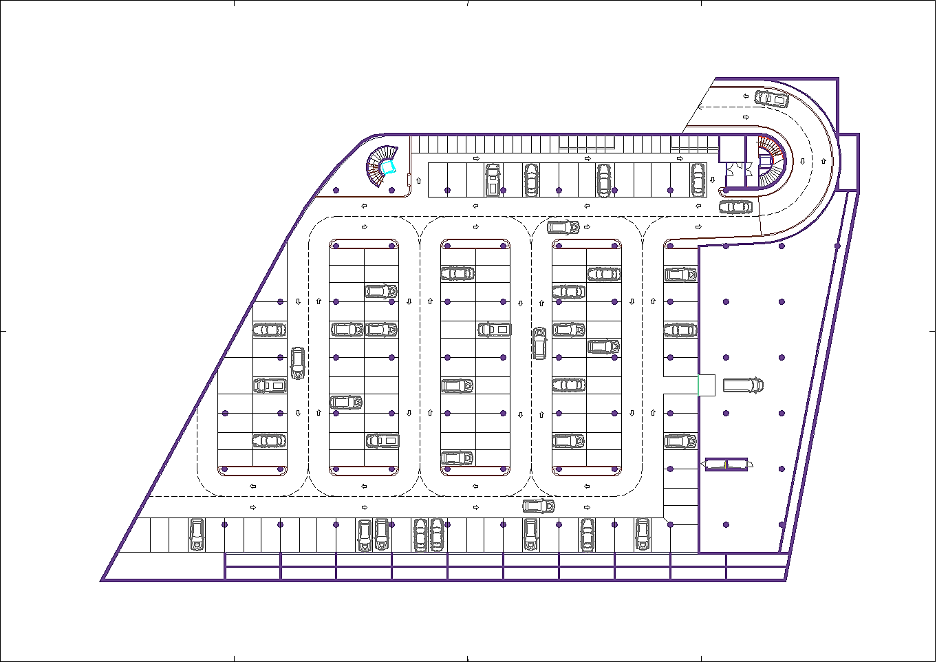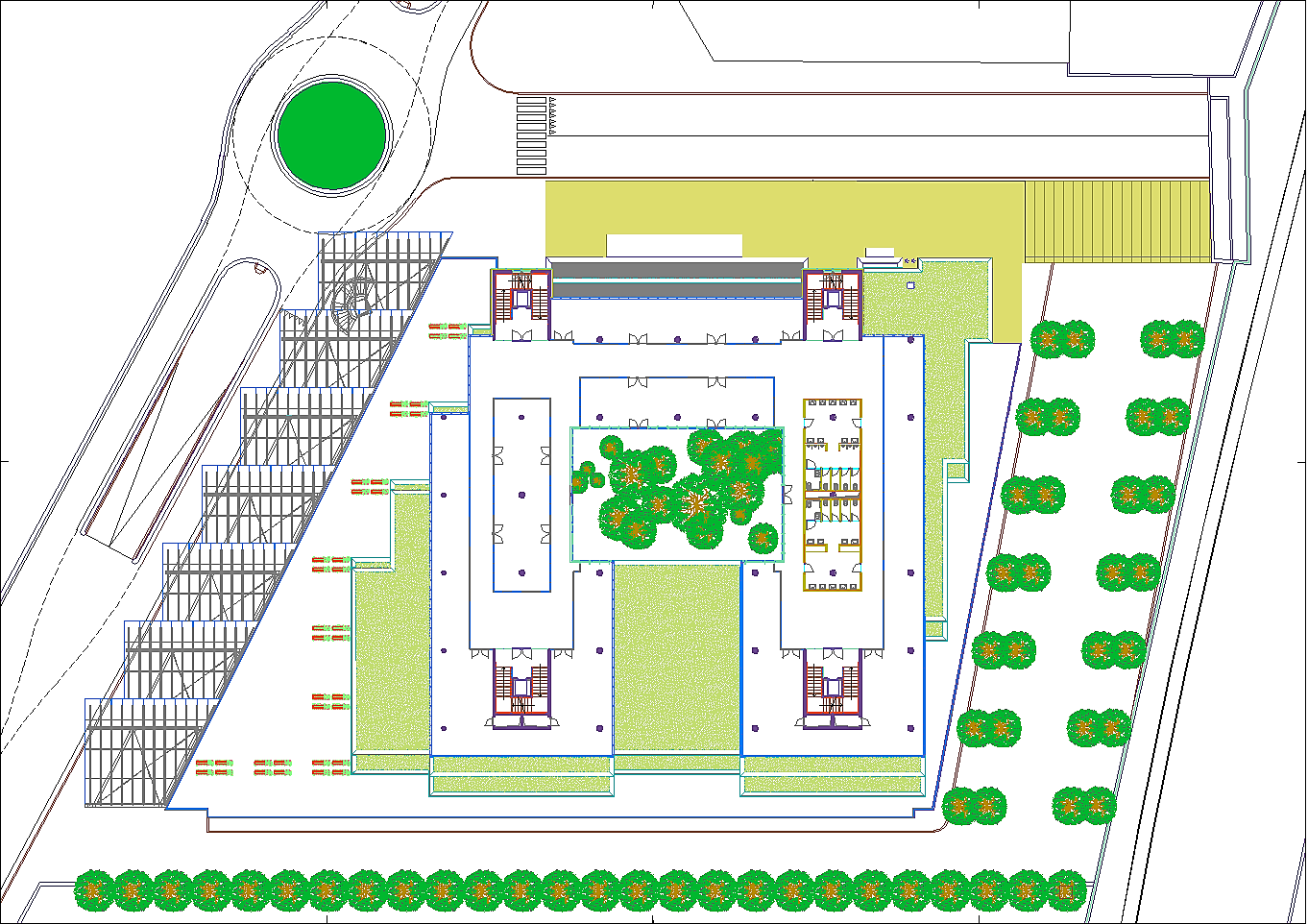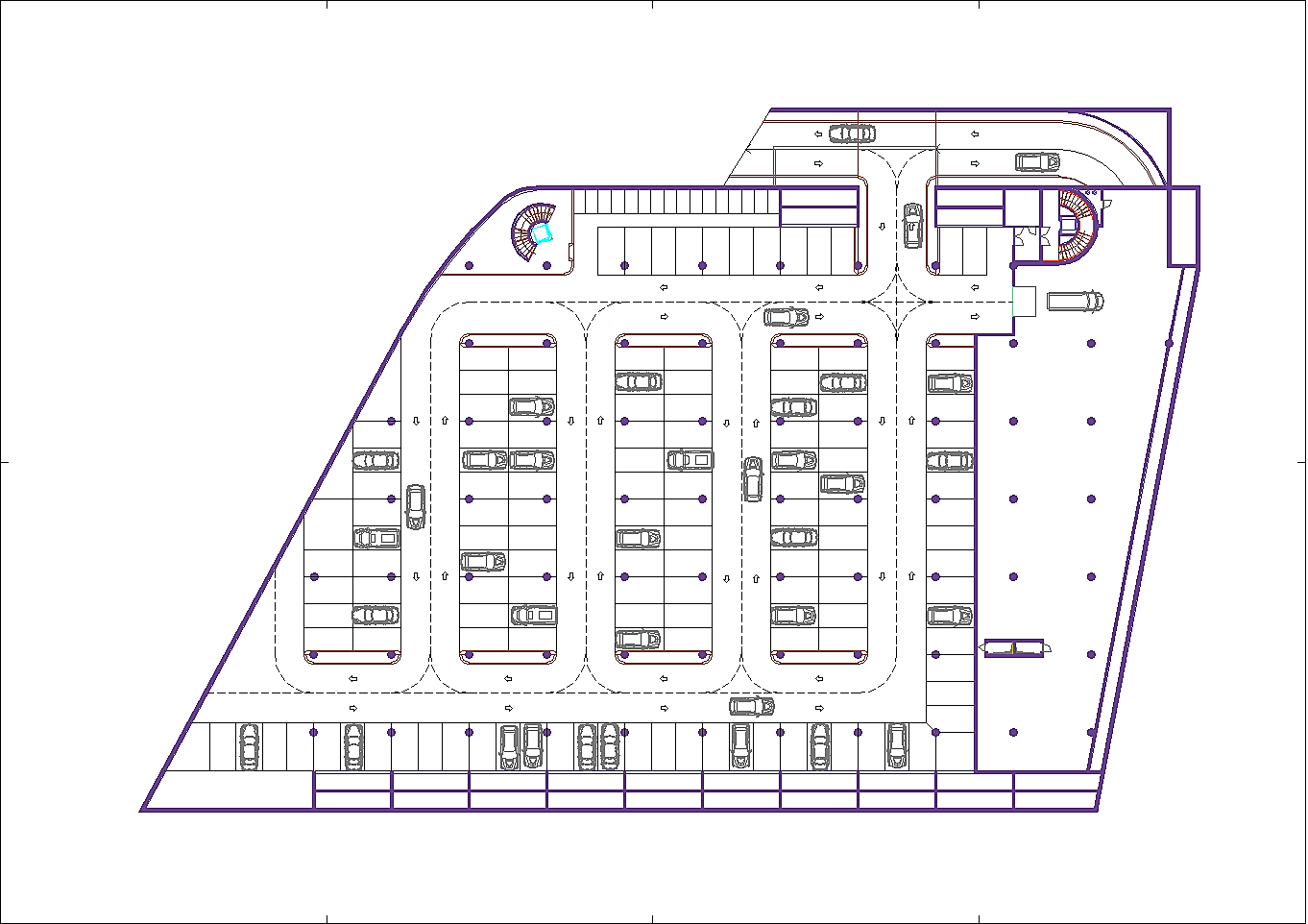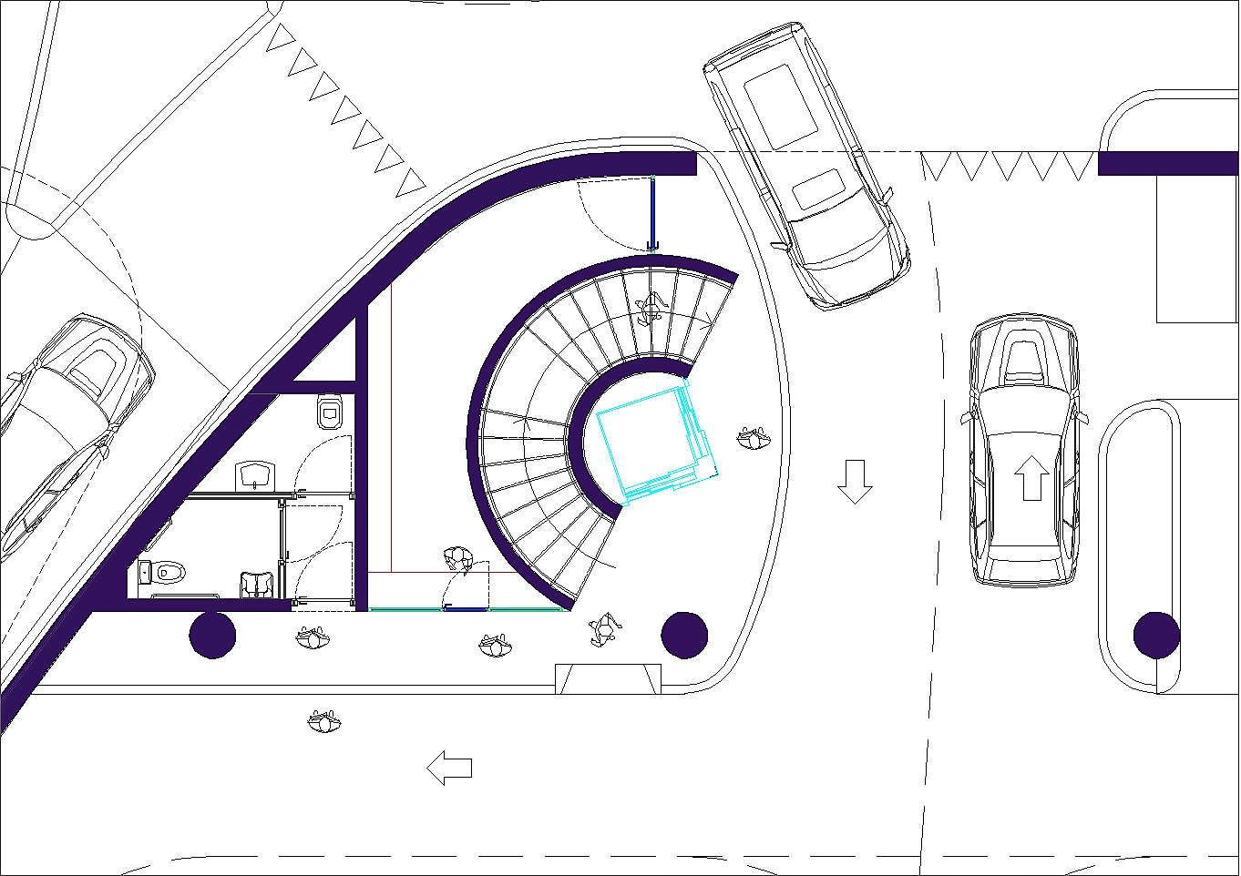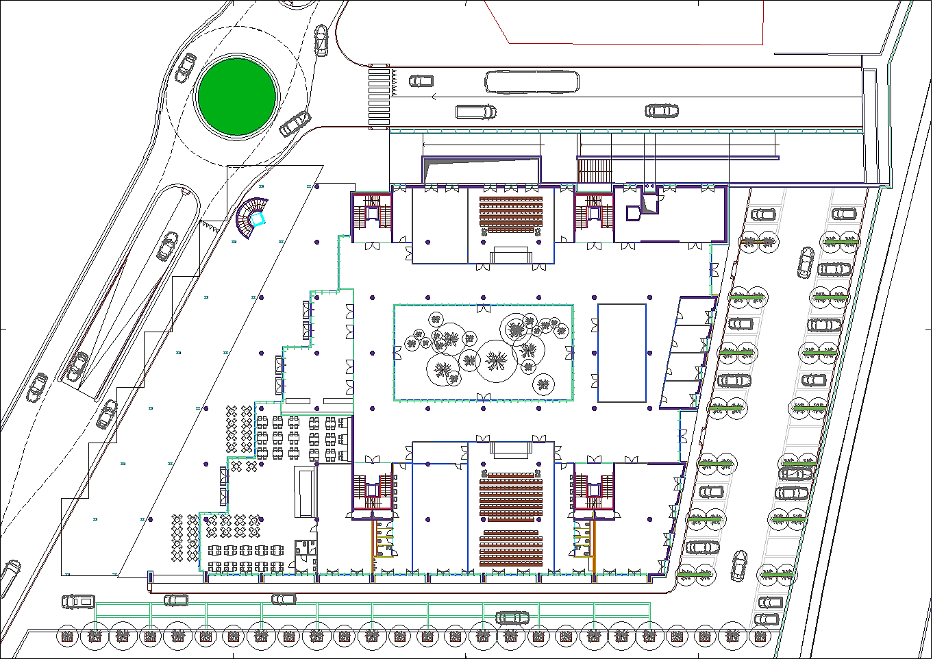 Prima di passare all'illustrazione del progetto bisogna non dimenticare che l'area attuale è adibita ad un importantissimo parcheggio pubblico. Esso è indispensabile a chi, da fuori, voglia entrare nel centro storico. La sua rimozione sarebbe inaccettabile. A tal fine tutta l'istituzione precedentemente descritta riguarda i volumi fuori terra, eccetto le parti relative ai servizi tecnologici. Negli interrati sono stati ricavati tre livelli di parcheggi pubblici completamente autonomi dal resto dell'edificio per complessivi posti auto 453. Si sa già che non sarà possibile realizzare il terzo livello interrato in quanto le falde si trovano a -6.00 metri dalla superficie del terreno calpestabile, pertanto i posti auto disponibili si riducono a 310, che corrispondono alle capacità del parcheggio attuale. A questi posti auto pubblici bisogna aggiungere una cinquantina di posti pertinenziali ricavati nello spazio retrostante al fabbricato. Da non dimenticare un cinquantina di posti al coperto per motociclette ed altrettanti e più per biciclette.