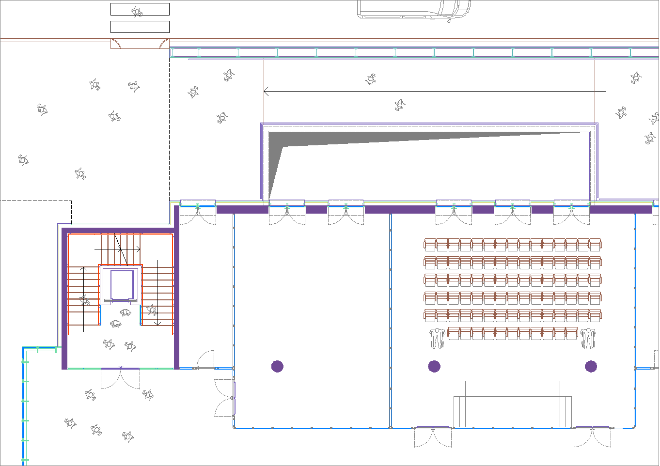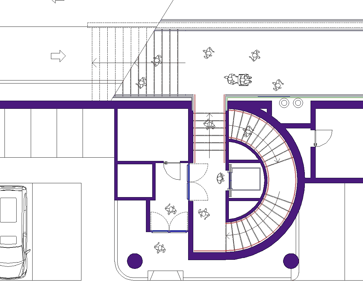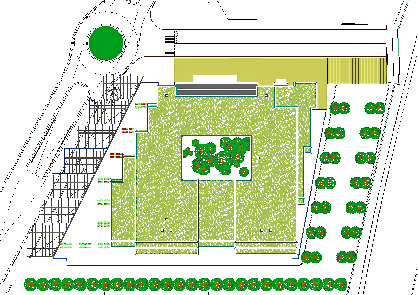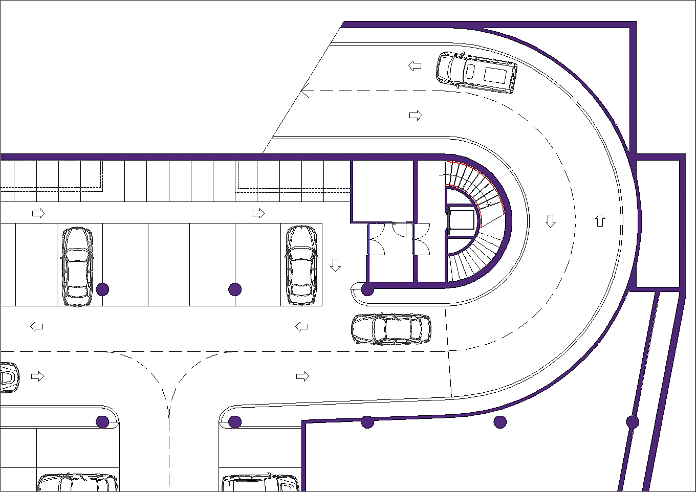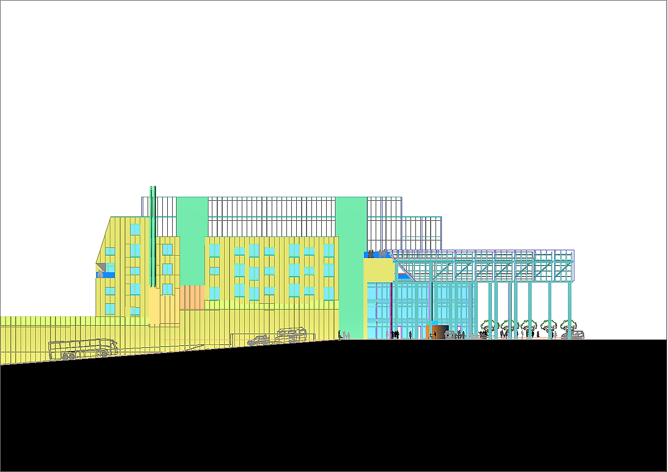 Prima di passare all'illustrazione del progetto bisogna non dimenticare che l'area attuale è adibita ad un importantissimo parcheggio pubblico. Esso è indispensabile a chi, da fuori, voglia entrare nel centro storico. La sua rimozione sarebbe inaccettabile. A tal fine tutta l'istituzione precedentemente descritta riguarda i volumi fuori terra, eccetto le parti relative ai servizi tecnologici. Negli interrati sono stati ricavati tre livelli di parcheggi pubblici completamente autonomi dal resto dell'edificio per complessivi posti auto 453. Si sa già che non sarà possibile realizzare il terzo livello interrato in quanto le falde si trovano a -6.00 metri dalla superficie del terreno calpestabile, pertanto i posti auto disponibili si riducono a 310, che corrispondono alle capacità del parcheggio attuale. A questi posti auto pubblici bisogna aggiungere una cinquantina di posti pertinenziali ricavati nello spazio retrostante al fabbricato. Da non dimenticare un cinquantina di posti al coperto per motociclette ed altrettanti e più per biciclette.