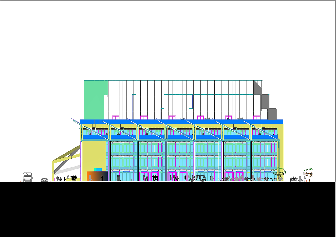34. Piazzale San Severino - Trento. Struttura ad alto indice volumetrico per uffici aministrativi, luoghi per ritrovo studenti, dipartimento di ricerca dell'Univerità degli Studi di Trento nonché servizi per la città.