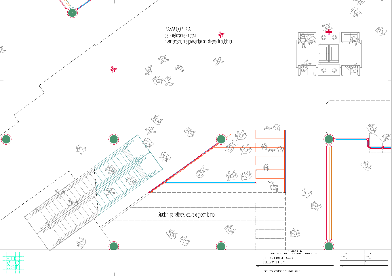 Oltre alle normali dotazioni di negozi commerciali, l'intervento offre un luogo deputato al ritrovo e allo scambio, con servizio di ristorazione e bar. Poiché molto dipenderà dalla mobilità privata con automezzi, questi verranno parcheggiati in garage interrati, poiché non è più accettabile la loro presenza in superficie.