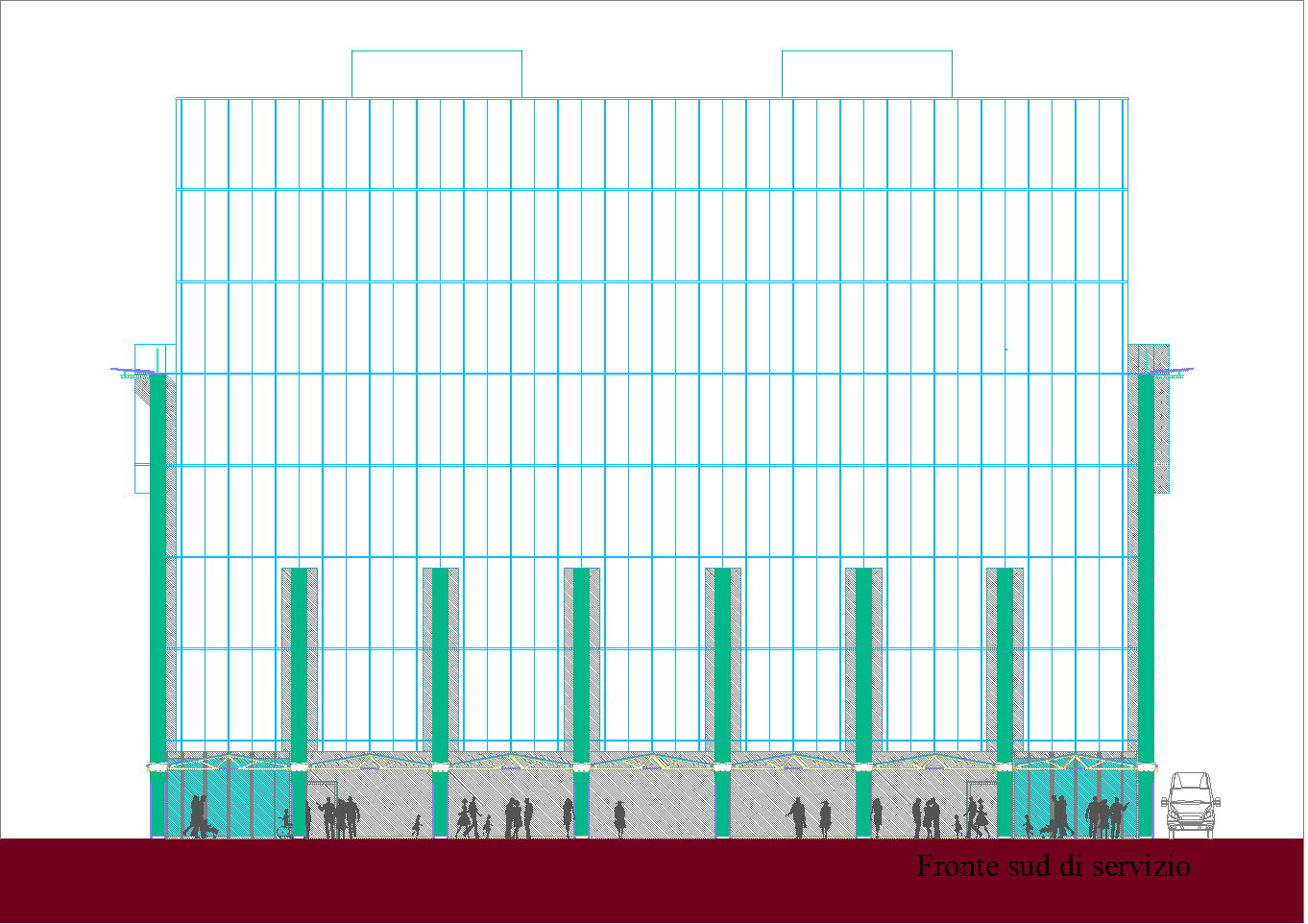 Il tema progettuale è il consueto palazzo per uffici intensivo con il problema di dover coesistere su via Verdi affiancato dal recuperato Molino Vittoria. L'ipotesi più che probabile dell'interramento della ferrovia che passa a poche decine di metri dal sito con la creazione, in sua vece, di una metropolitana di superficie che possa avere una fermata sulla stessa importante via per l'accesso al centro storico di Trento stimola il progettista a riflettere sull'intero intorno al fine di valutare l'opportunità di una forte concentrazione volumetrica che trovi un appoggio dal servizio pubblico della rete urbana. Chi viene da fuori può sempre fruire per poco tempo del parcheggio pubblico in via San Severino.