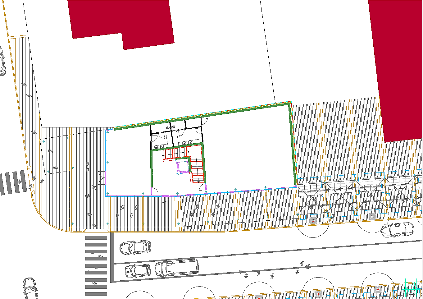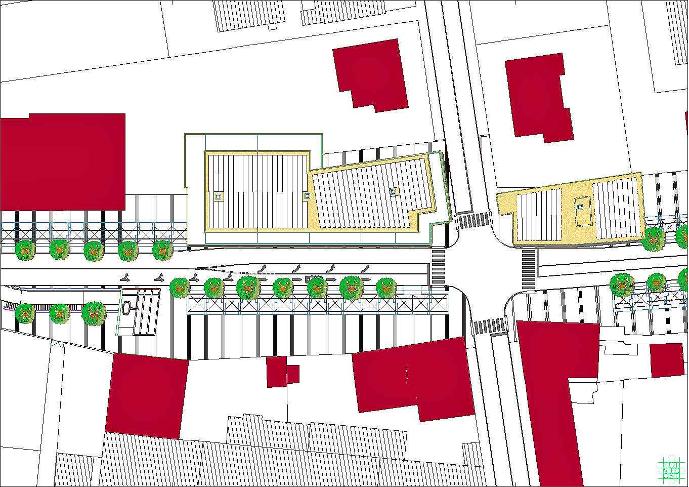 Nella definizione della piazza è fondamentale il presente progetto, che annulla il parcheggio all'angolo e definisce lo spazio pubblico. (novembre 2017- gennaio 2018)