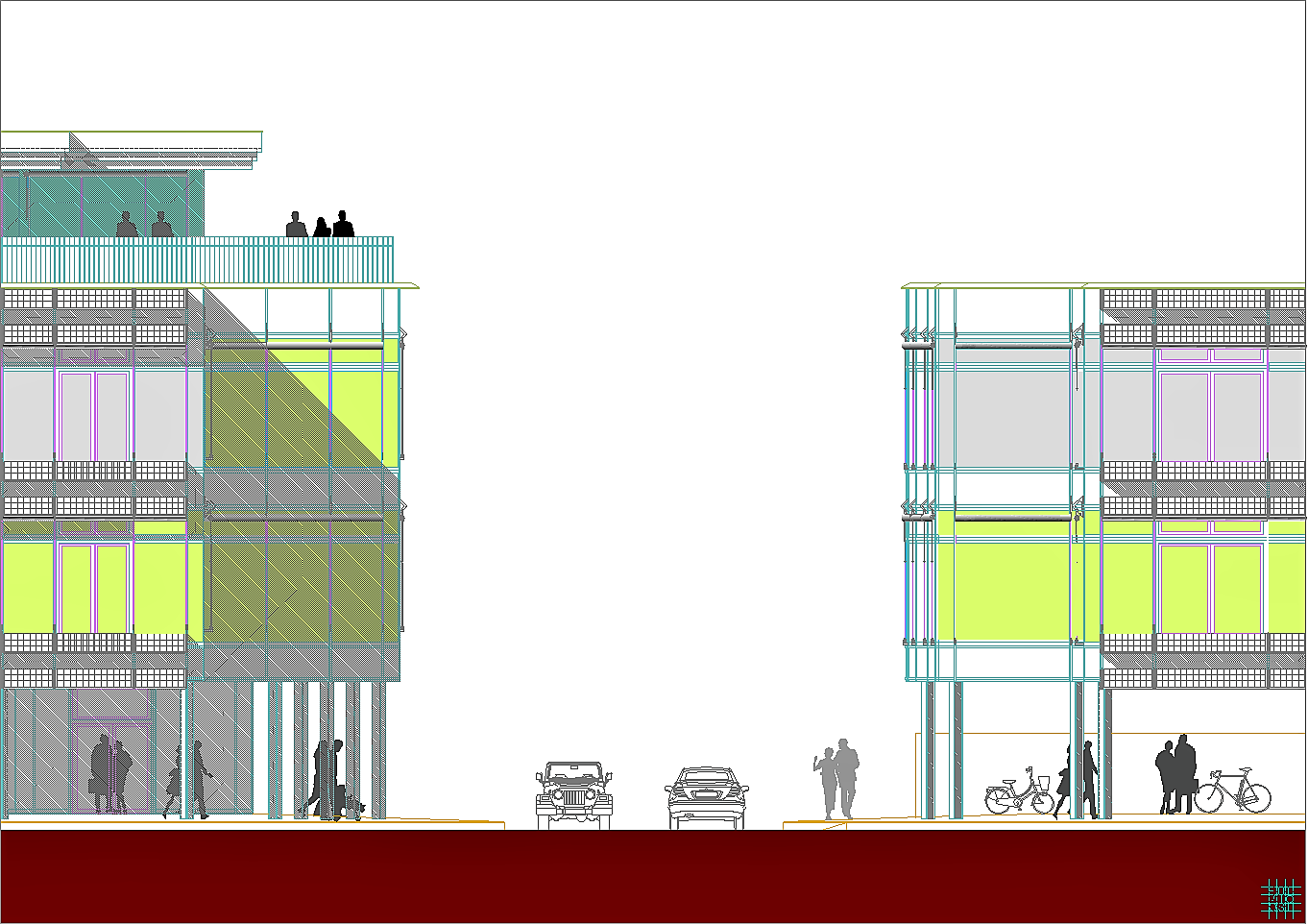 37. Riqualificazione urbana in Via Degasperi A Mezzolombardo - Palazzine d'angolo con Corso del Popolo.