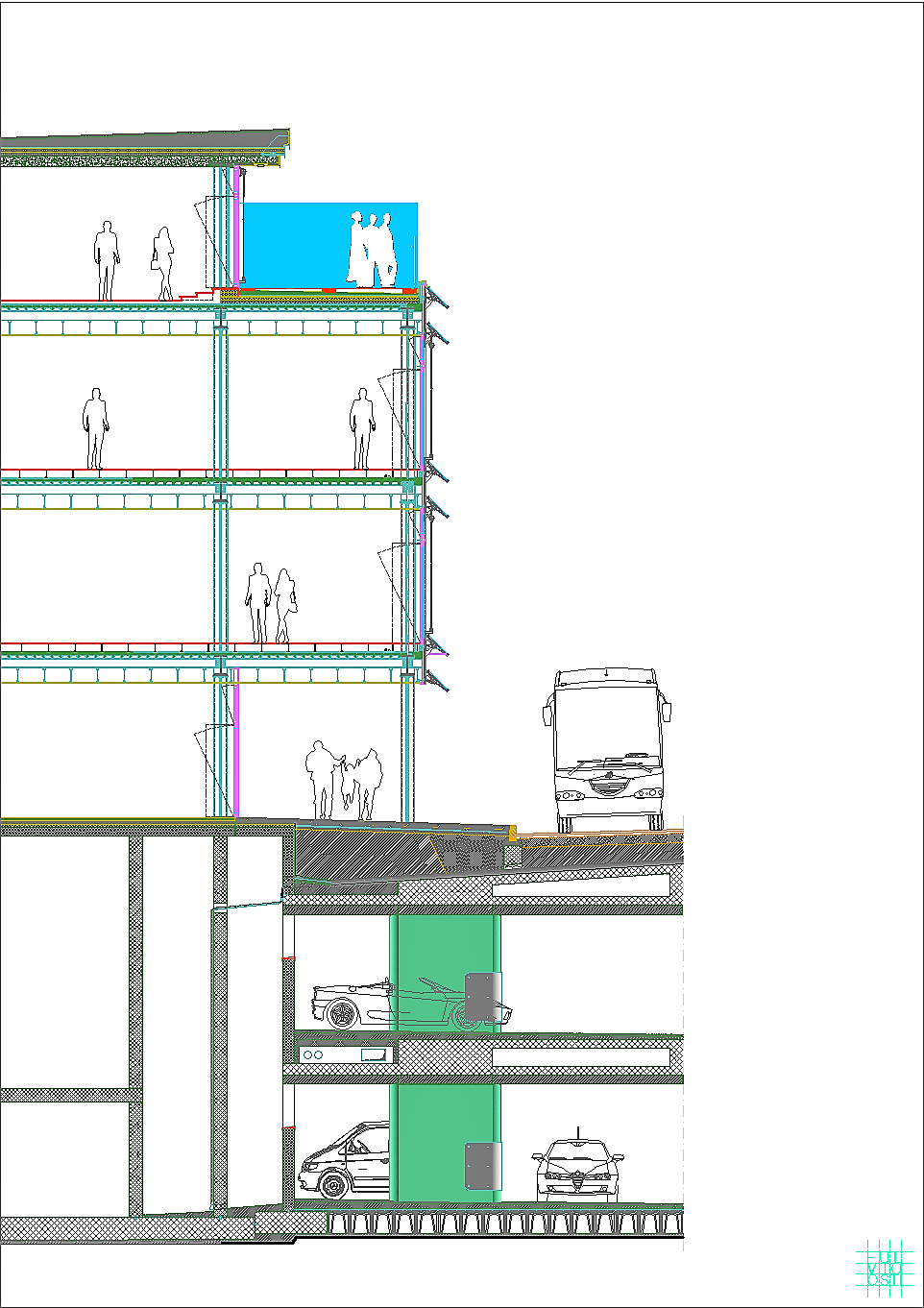 Il presente progetto trova luogo all'interno del più generale progetto a scala urbana che definisce la ristrutturazione e rifacimento della viabilità di superficie della più generale via Degasperi. L'incrocio storico mai risolto e mai volutamente affrontato nei decenni scorsi, quando di pose il problema dell'apertura della nuova viabilità per sottrarre il traffico di transito da via Garibaldi e Mazzini, in questo progetto trova una sua definizione attraverso la materializzazione di uno spazio urbano definito da una palazzata di nuova concezione dietro alla quale si nascondono significativi volumi adibiti sia al terziario che al residenziale.