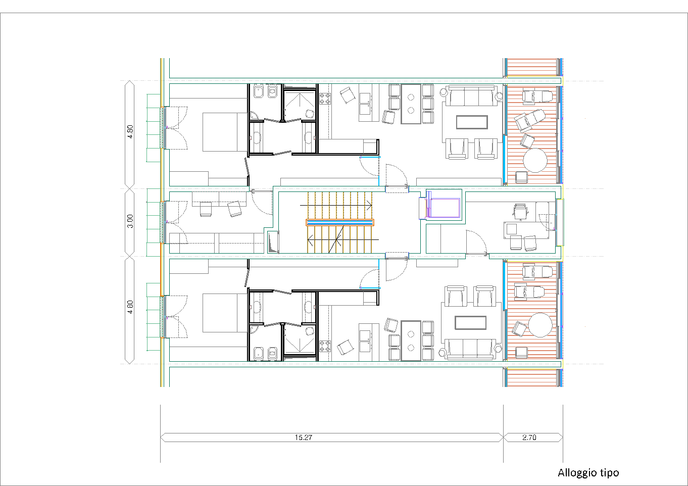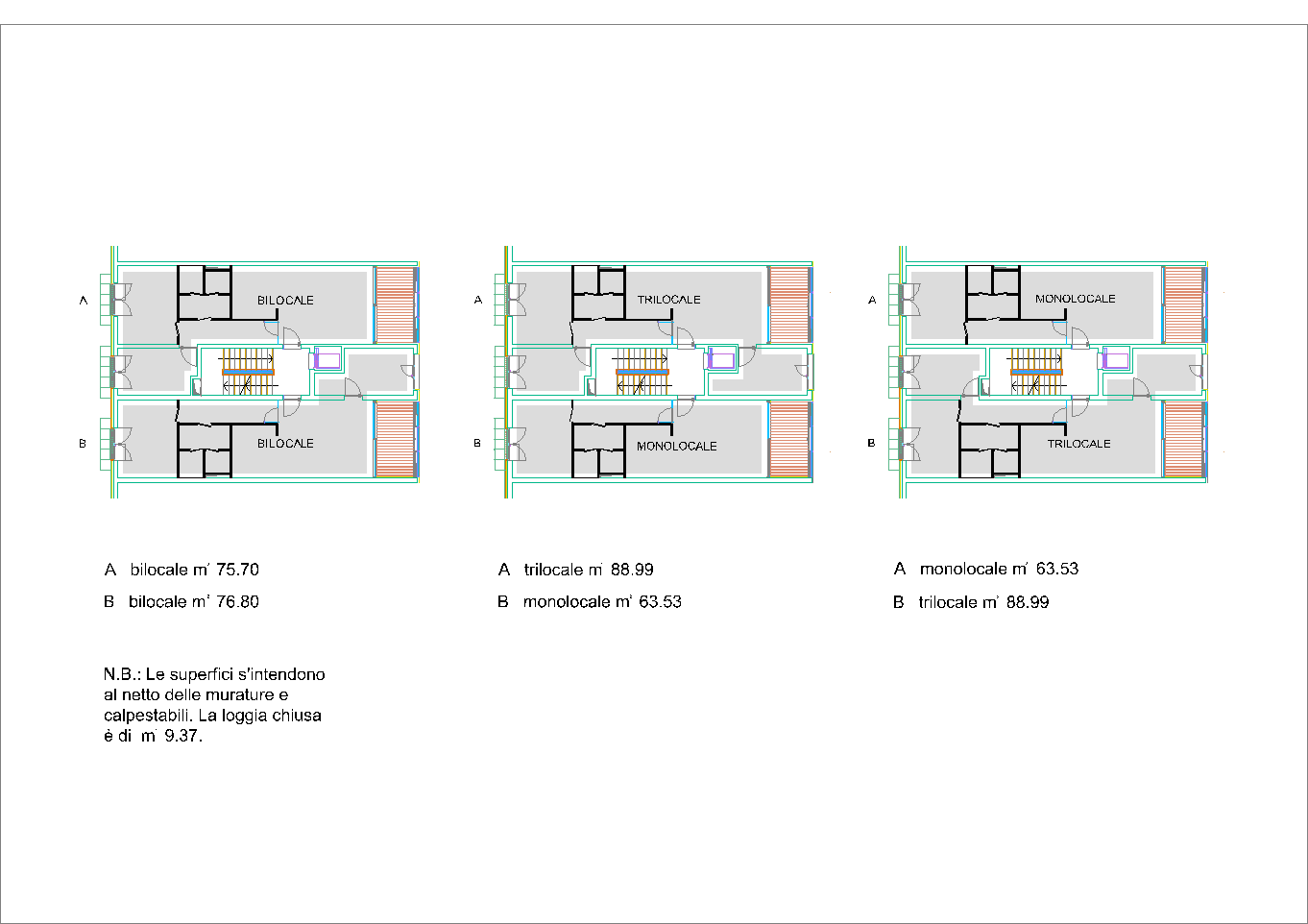 Maggiore attenzione si è prestata agli alloggi che sono del tipo passante a doppio affaccio, che presentano una profondità totale di diciotto metri, loggia compresa. Inoltre essi hanno un taglio costante (tutti bilocali) ma flessibile sia nell'offerta che nell'ipotesi di una mobilità interna nel tempo, potendo passare infatti da bilocali a monolocali e trilocali con il semplice scambio di superfici.