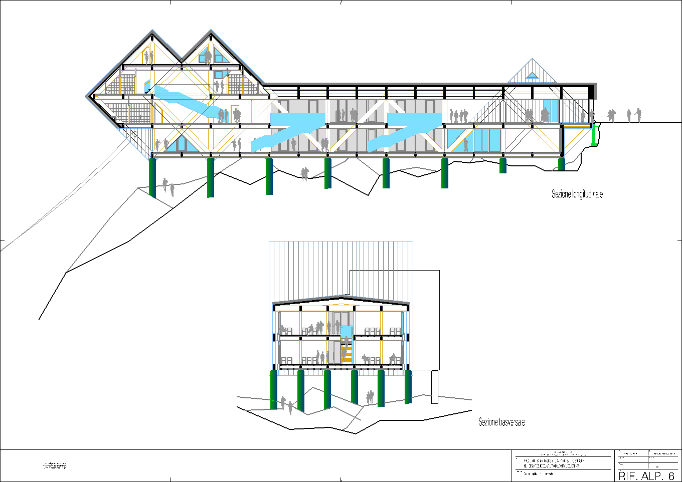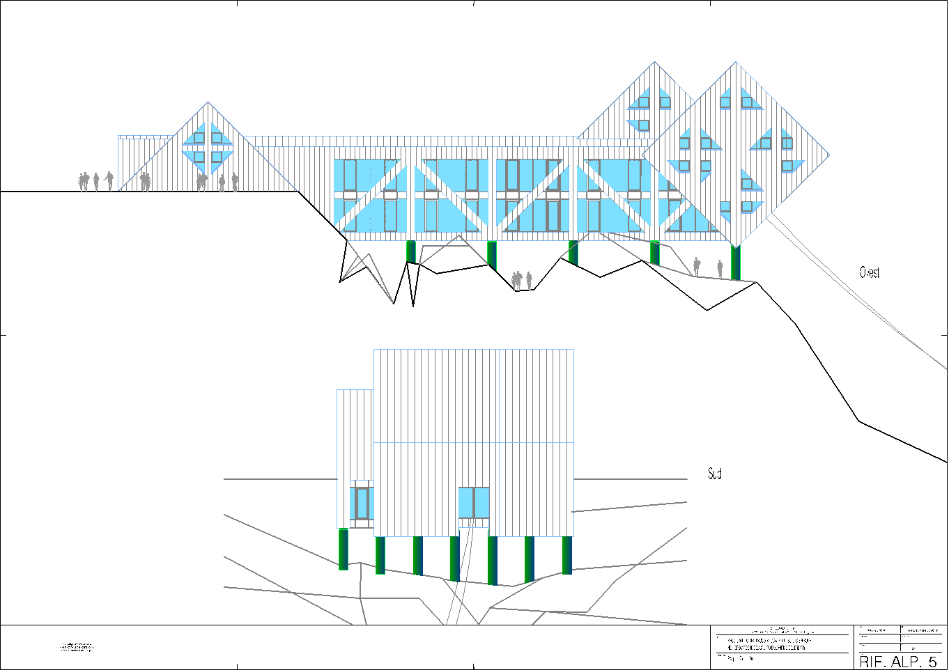 Forse la natura della roccia, oggetto di epoche geologiche di stratificazioni marine, assomiglia più a strutture semplici fatte di piani quali i volumi di cubi, parallelepipedi e piramidi che ad altro. Nella sostanza, e rispettando il salto di scala, sono, nel grande, ciò che un cristallo di dolomia è nel piccolo. Le suggestioni di un cinematismo apparentemente bloccato da un tempo geologico a noi sfuggevole, le instabilità sia geomorfologiche che climatiche informano le scelte progettuali e fanno sentire la realizzazione qualcosa di non estraneo se non intimo al luogo, all'ambiente e al paesaggio alpino.