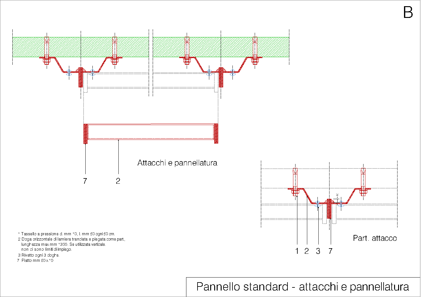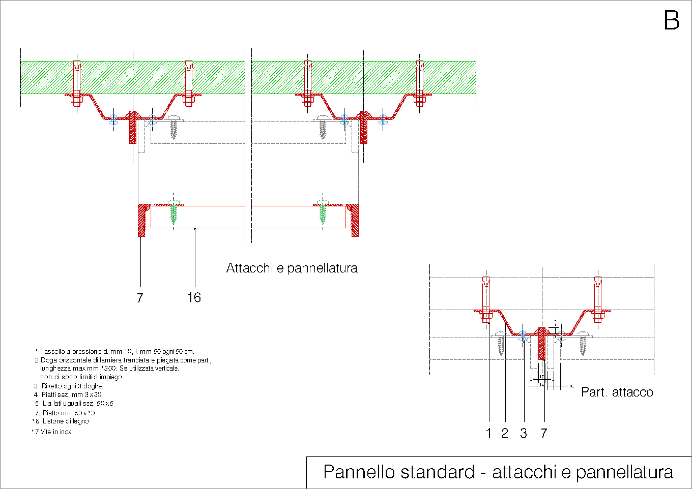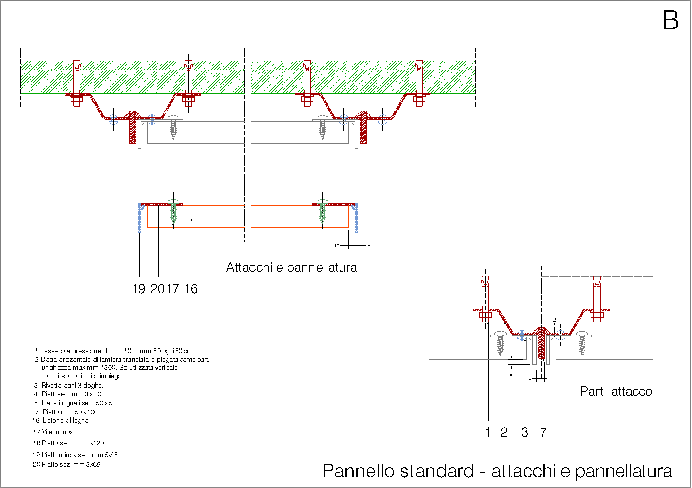 Questo sistema riguarda le facciate cieche che devono essere rivestite mediante griglia ventilata. Il sistema è totalmente realizzabile mediante profili metallici commerciali, ad esclusione delle doghe che devono essere pressopiegate. (luglio 2019)