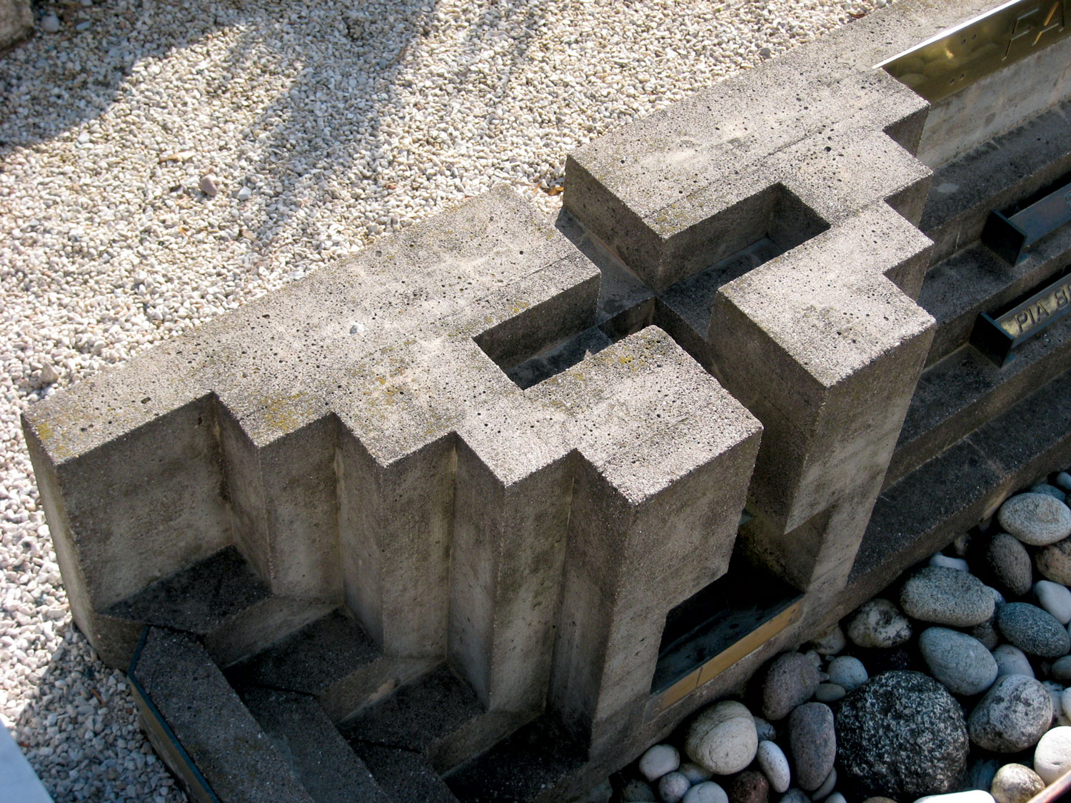 La lezione di Carlo Scarpa è ancora troppo forte per non essere avvertita. Il progettista, nonché materiale esecutore del manufatto, rielabora i moduli del maestro su un personale passo di settanta millimetri.