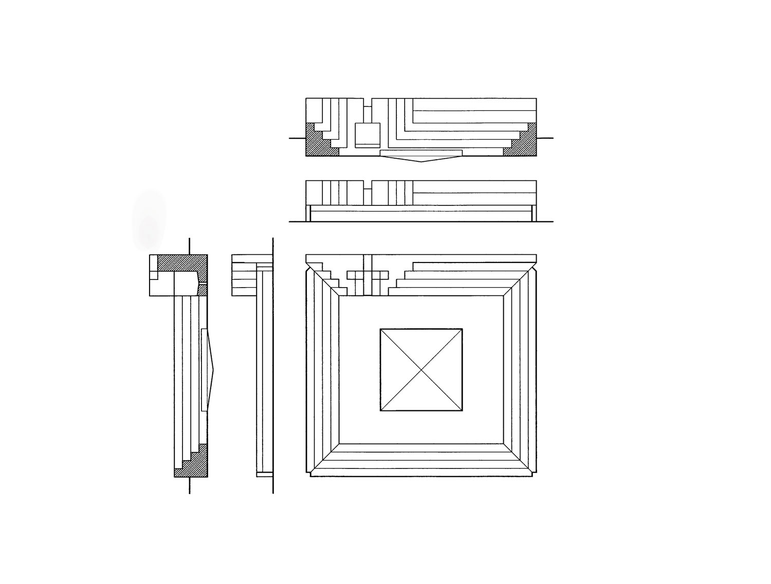 Il concept è un recinto dentro al quale, attraverso i moduli-gradini, si vuole realizzare uno spazio degradante che evoca uno spazio psichico della concentrazione, della memoria e della riflessione.