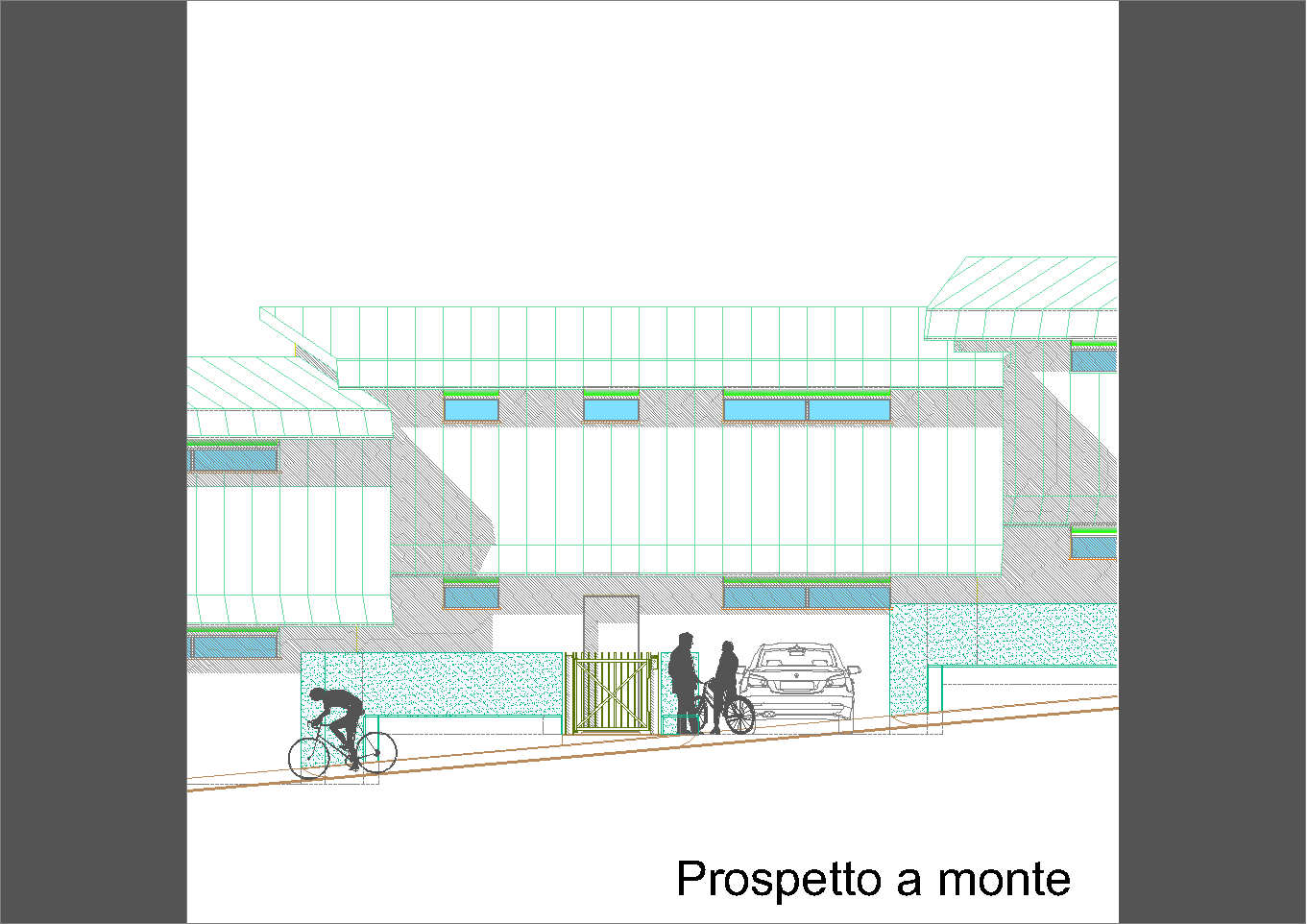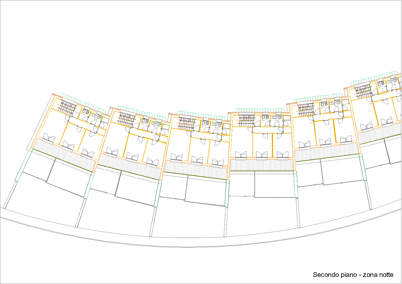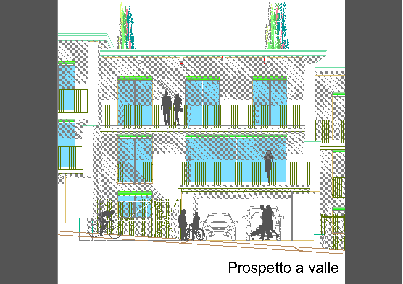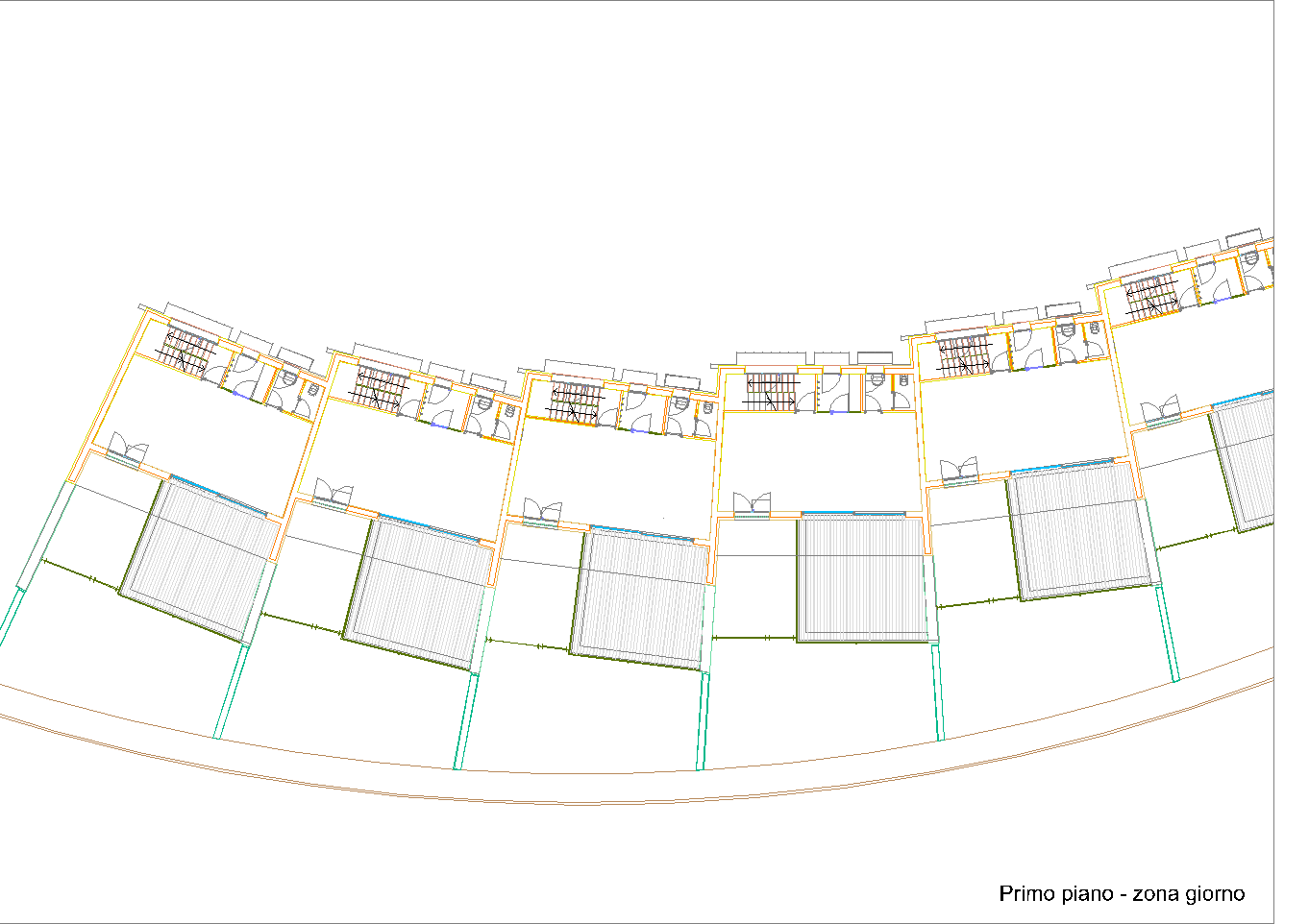 Il problema è semplice ed è antico quanto l'uomo: cercare la ripetibilità in situazioni non scontate relative a una strada-percorso matrice in sensibile pendenza e non rettilinea. Essa detta la ritmica dei volumi e le relazioni spaziali trai le singole unità edilizie. La voluta presenza di volumi tecnici delle autorimesse scandisce la metrica e permette interessanti spazi della vivibilità familiare, nonché permette di trovare l'individualità sempre agognata delle singole unità.