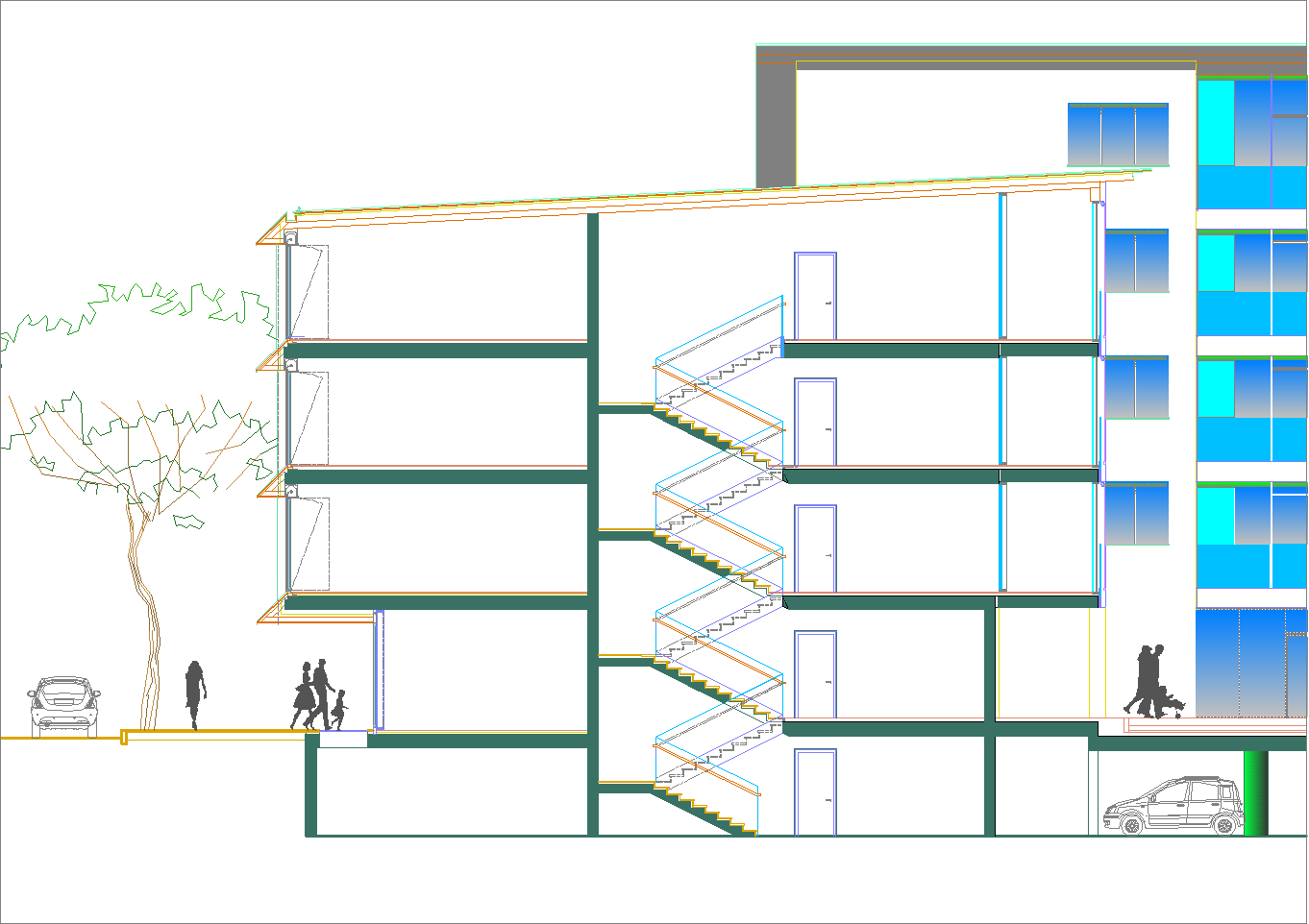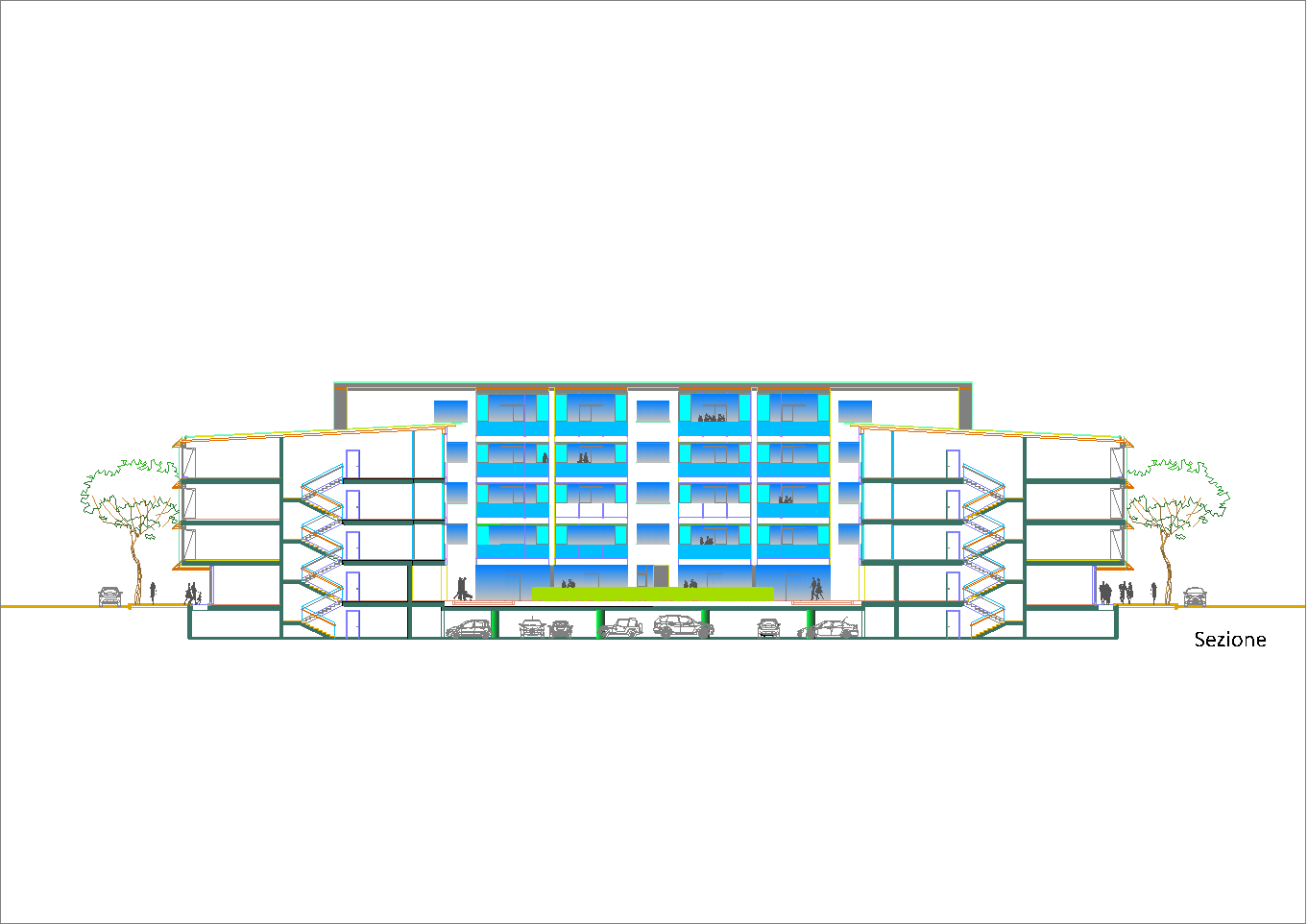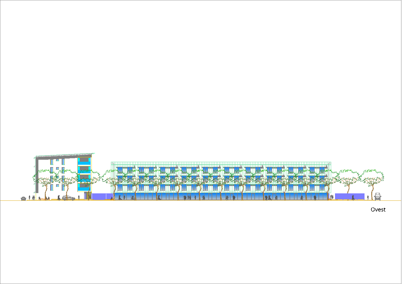 Studio per una unità residenziale pensata per una media periferia urbana da riqualificare: alloggi, negozi, uffici e laboratori assieme a parco interno privato e parcheggio interrato. (marzo-aprile 2020)