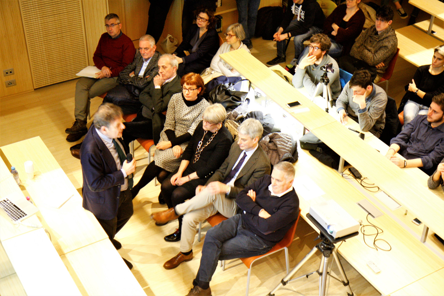La serie di fotografie, che cui vengono presentate, sono l'occasione per testimoniare l'attenzione con la quale un folto numero di studenti e non ha presenziato alla più che esauriente esposizione dei fatti del prof. Franceco dal Cò, il quale invece non ha bisogno di presentazione alcuna.
