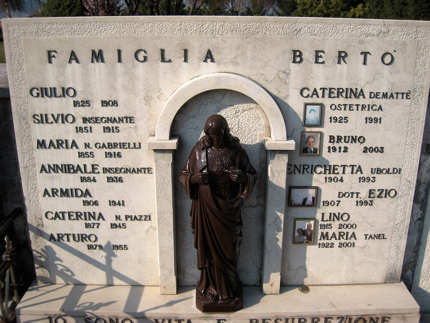 I nonni materni erano Arturo Bertò (n. 1879 - m. 1955) di Spor e Caterina Piazzi (n. 1877 - m. 1945) proveniente da Castelfondo, della quale non conosco il nome dei genitori. I genitori di Arturo erano Silvio Bertò (n. 1851 - m. 1915) e Maria Gabrielli di Celledizzo di Val di Pejo (n. 1855 - m. 1916). I nonni Osti abitavano oltre il portico destro della foto di gruppo, mentre i nonni Bertò abitavano oltre quello di sinistra, al livello superiore.